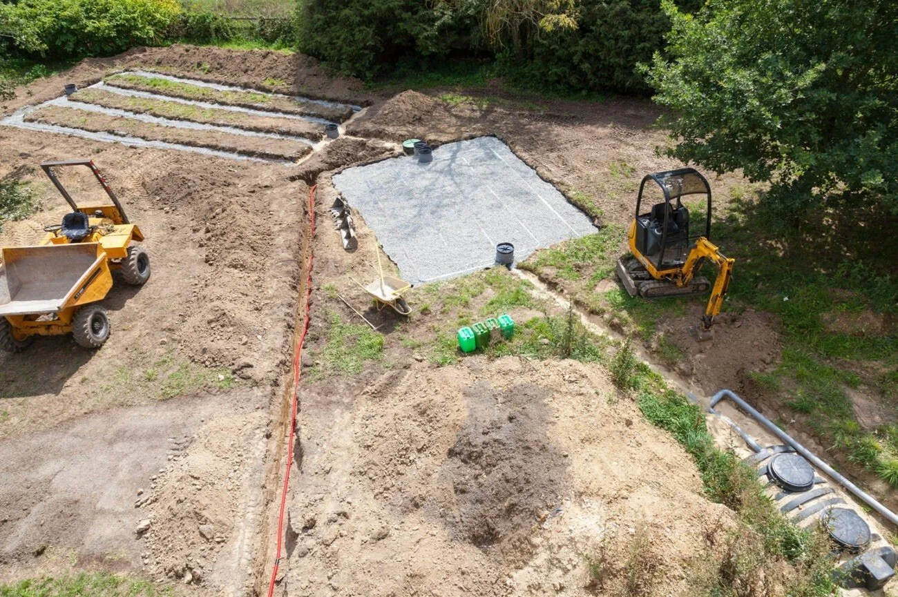 Excavation for tanks and drain fields